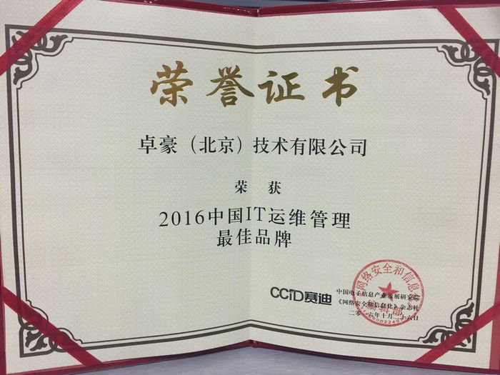 日前,在中國(guó)電子信息產(chǎn)業(yè)發(fā)展研究院和《網(wǎng)絡(luò)安全和信息化雜志社》聯(lián)合舉辦的中國(guó)IT運(yùn)維大會(huì)上,由行業(yè)權(quán)威專家和用戶評(píng)選的IT運(yùn)維領(lǐng)域杰出企業(yè)名單出爐,卓豪榮獲2016年中國(guó)IT運(yùn)維管理最佳品牌。