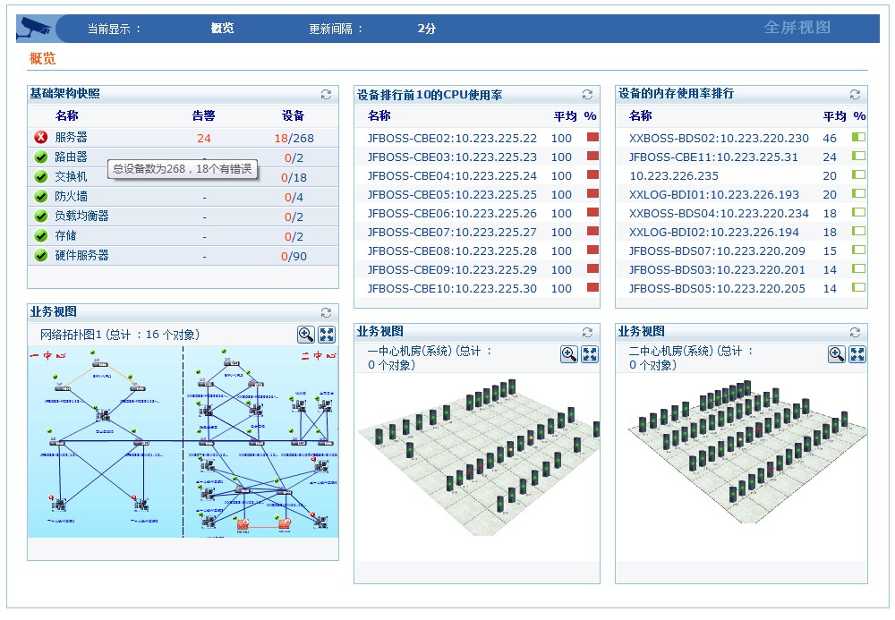 借助直觀的網(wǎng)絡(luò)拓?fù)鋱D和機(jī)房視圖,可以清晰地了解網(wǎng)絡(luò)結(jié)構(gòu)、機(jī)房設(shè)施以及業(yè)務(wù)應(yīng)用系統(tǒng),及時(shí)地發(fā)現(xiàn)和定位問(wèn)題,極大地降低了網(wǎng)絡(luò)運(yùn)維的難度。