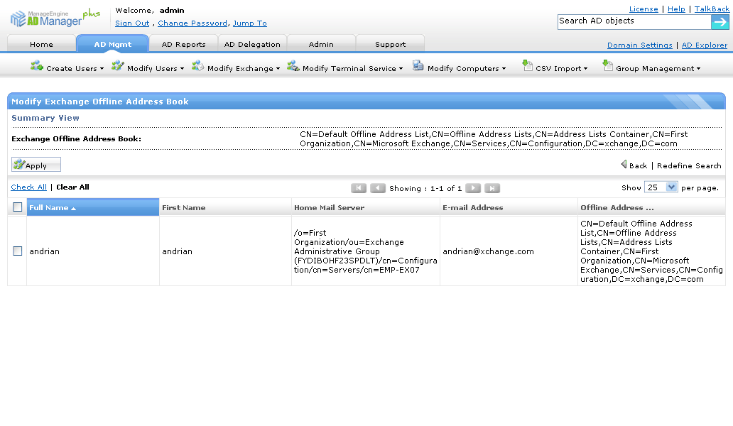 With ADManager Plus, administrators can easily set offline address book for users within a few few clicks. Also, it is possible to set offline address book for bulk users at a time by just importing a CSV file.