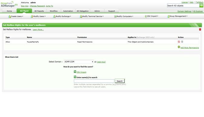Setting mailbox rights is very critical as it deals with the security of user mailboxes. With ADManager Plus, it is further simplified with the following advantages: