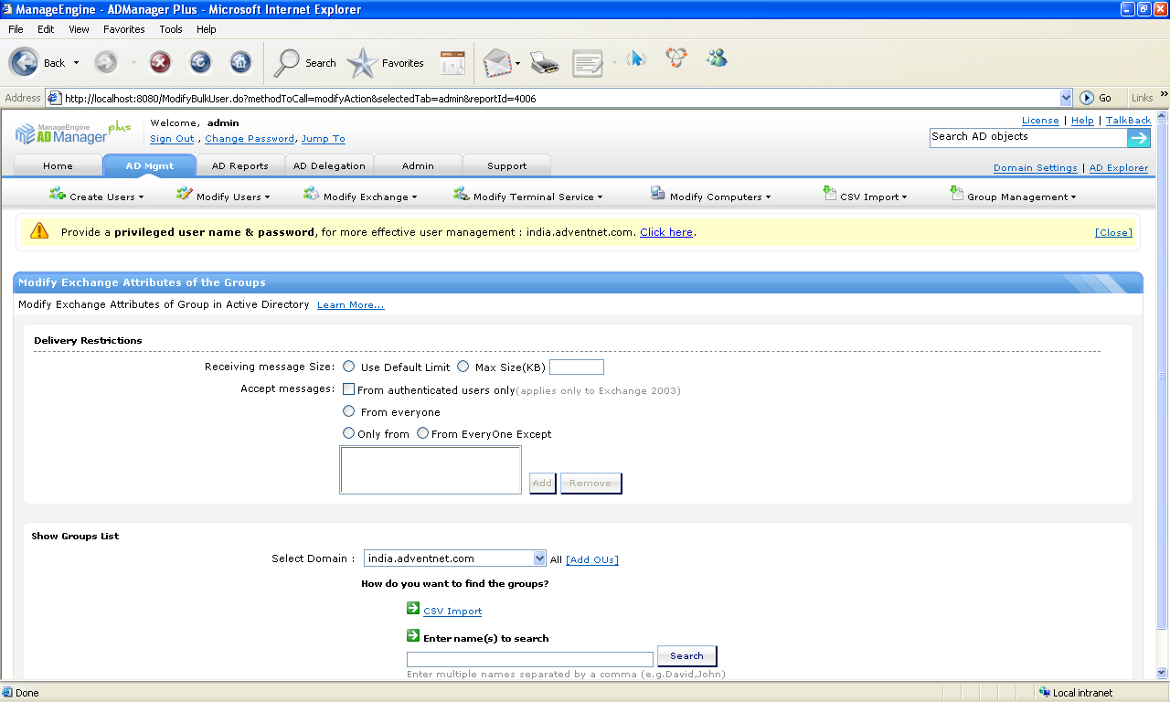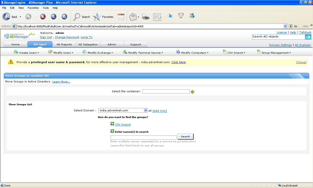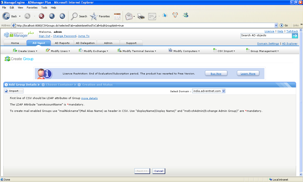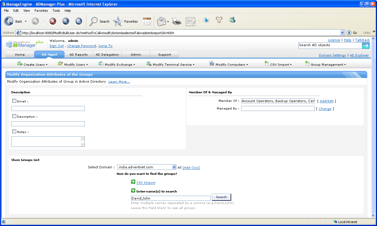 Managing Active Directory Groups happens to be a mammoth venture of time and efforts for most Active Directory administrators. The native Active Directory tools allow you to configure groups and assign / configure the various group attributes for only one group at a time. ManageEngine ADManager Plus is a specialized Active Directory solution to simplify every aspect of Microsoft Active Directory Management and Reporting. The Group Management module of ADManager Plus makes the otherwise complicated task of managing Active Directory Groups easy and hassle-free. It features three important aspects of Group Management namely Bulk Group Creation, Bulk Group Modification and AD Reports based Group Management. Mentioned below is more information on Active Directory Bulk Group Management.