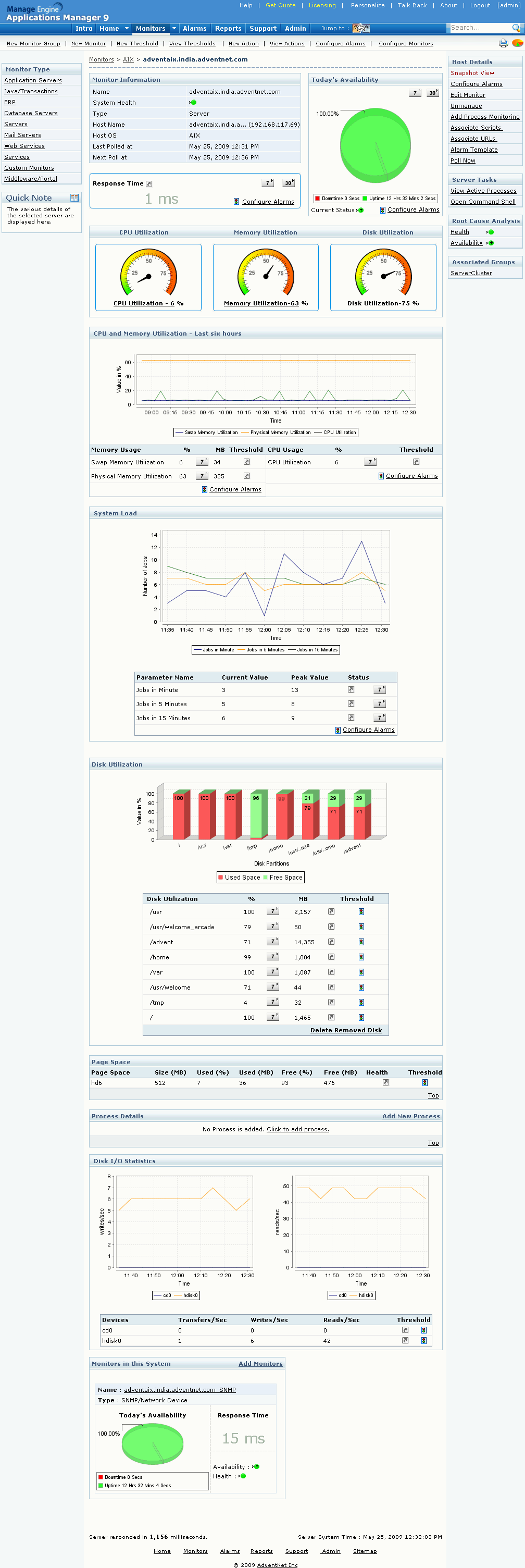 Applications Manager能監(jiān)控IBM AIX系統(tǒng)的性能。首先,Applications Manager發(fā)現(xiàn)每個(gè)AIX機(jī)器,然后監(jiān)控CPU行為,完整的內(nèi)存利用率,以及本地和遠(yuǎn)程系統(tǒng)的統(tǒng)計(jì)數(shù)據(jù)。