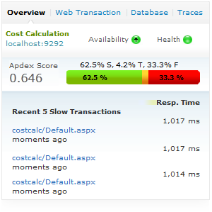 實(shí)時(shí)監(jiān)視關(guān)鍵性能參數(shù) 通過對端到端的.NET web事務(wù)處理跟蹤,可以透視從URL到SQL語句全程的性能數(shù)據(jù)。 全天候的監(jiān)視.NET web 事務(wù)處理的性能,在問題影響到最終用戶之前解決。