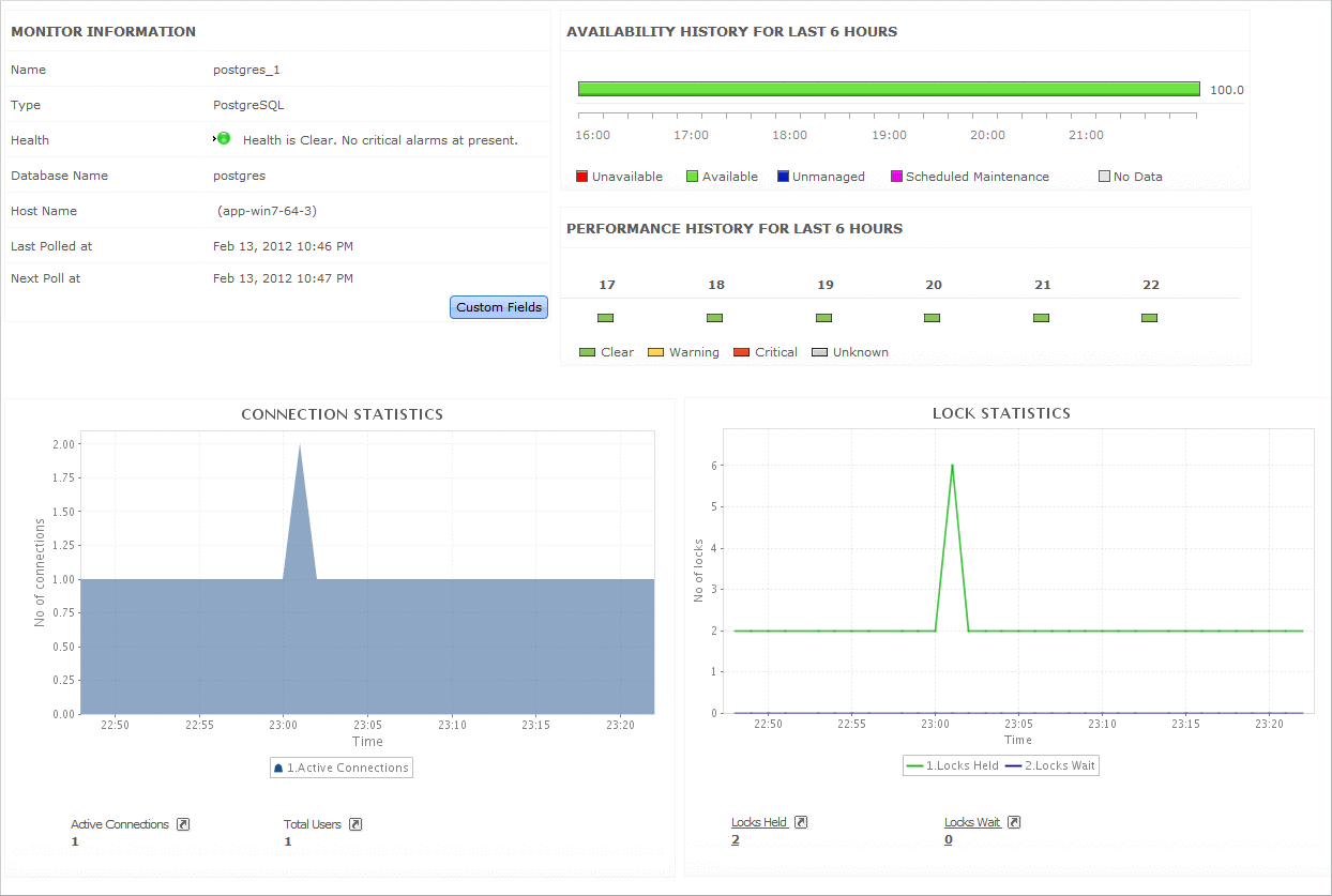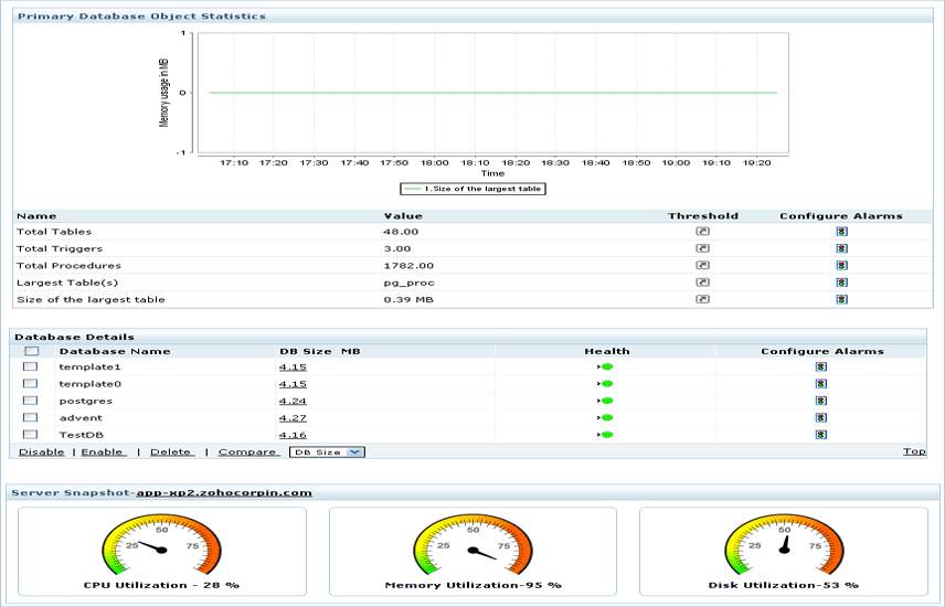 Applications Manager可監(jiān)控PostgreSQL數(shù)據(jù)庫服務(wù)器的可用性和性能,對數(shù)據(jù)庫的任何異常及時產(chǎn)生告警,通知管理員,便于采取有效措施,防止影響企業(yè)正常業(yè)務(wù)。