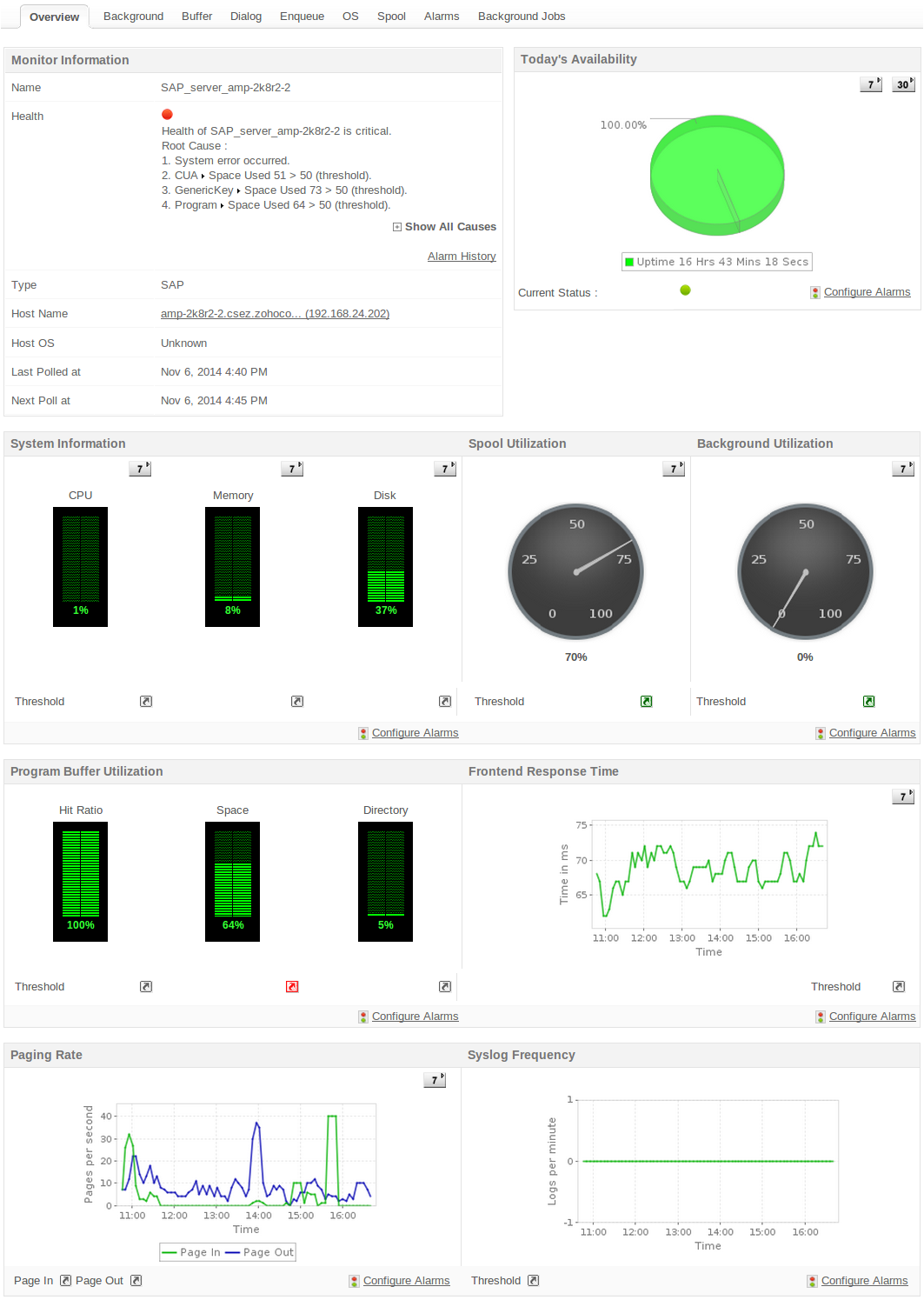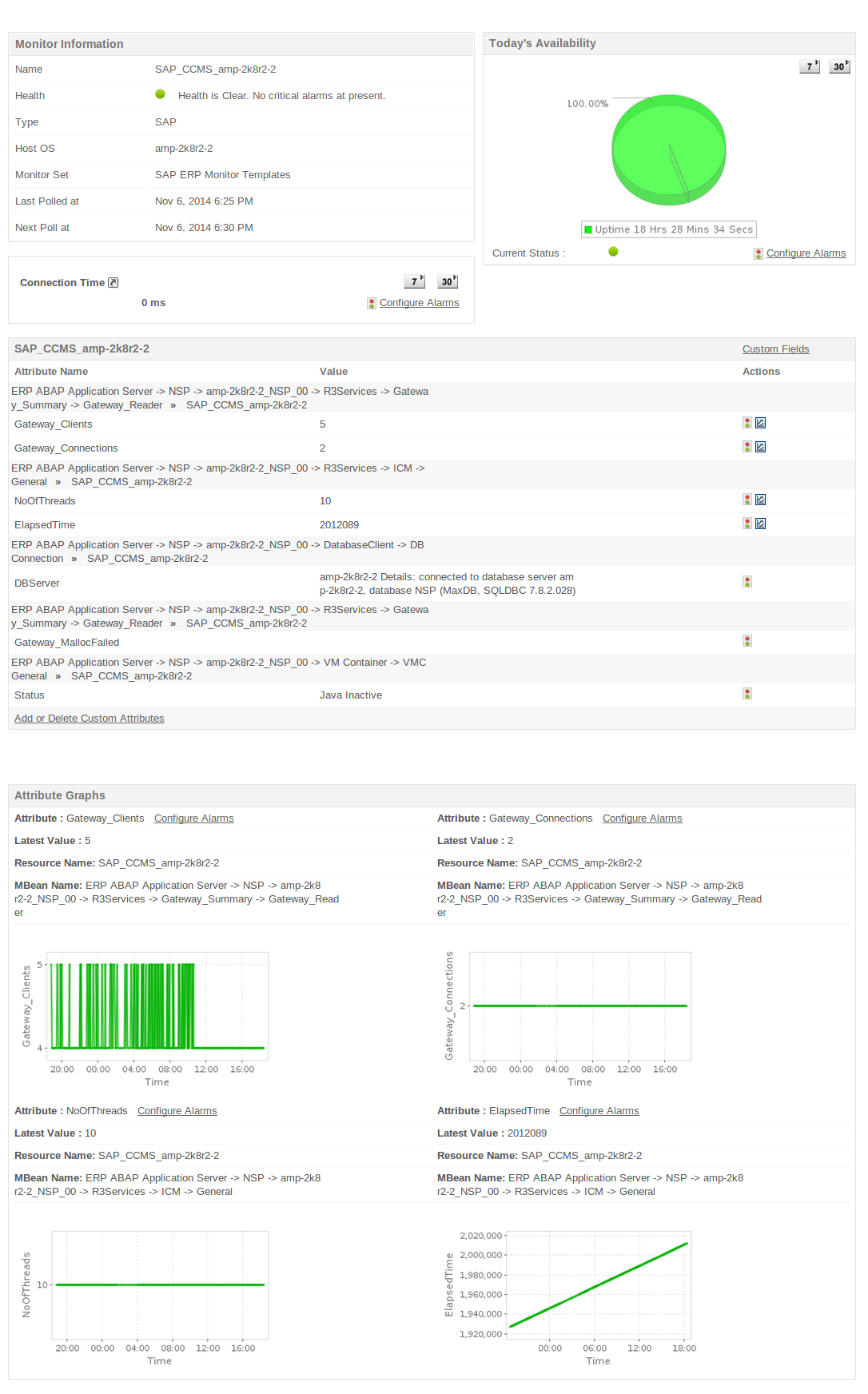 監(jiān)控SAP多種組件的性能,如SAP商業(yè)智能 (BI)、SAP客戶關(guān)系管理(CRM)、SAP 供應(yīng)鏈管理 (SCM)等等。還可以就這些組件的各個(gè)屬性,包括連接時(shí)間、性能參數(shù)、狀態(tài)及日志等進(jìn)行告警設(shè)置和生成報(bào)表。