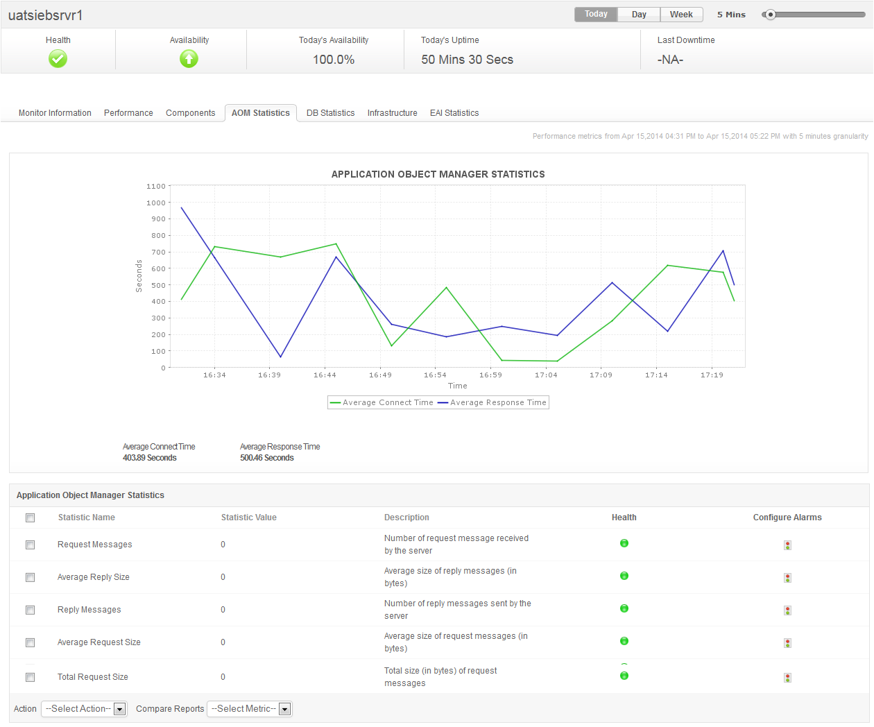 - Get AOM-specific statistics like Average Connect Time for AOM sessions, response time, reply size and think time