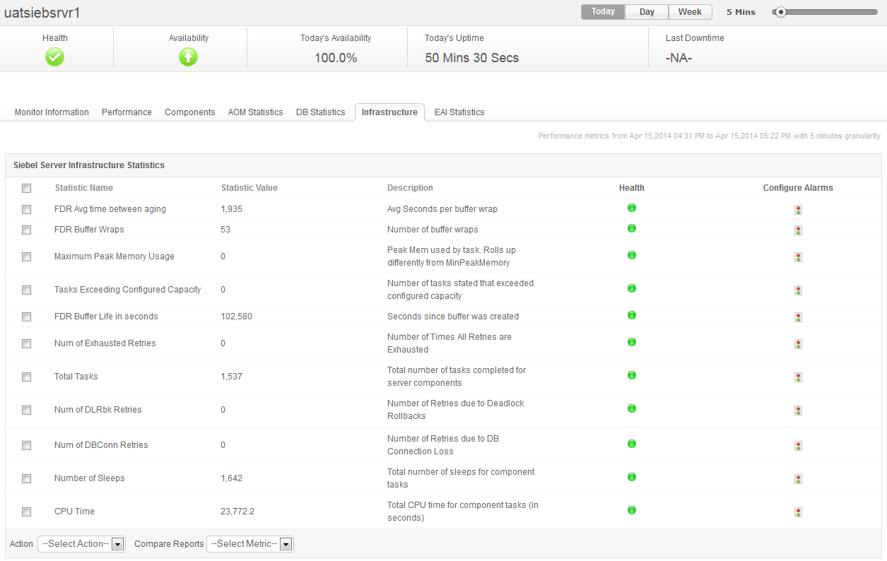 Siebel infrastructure monitoring