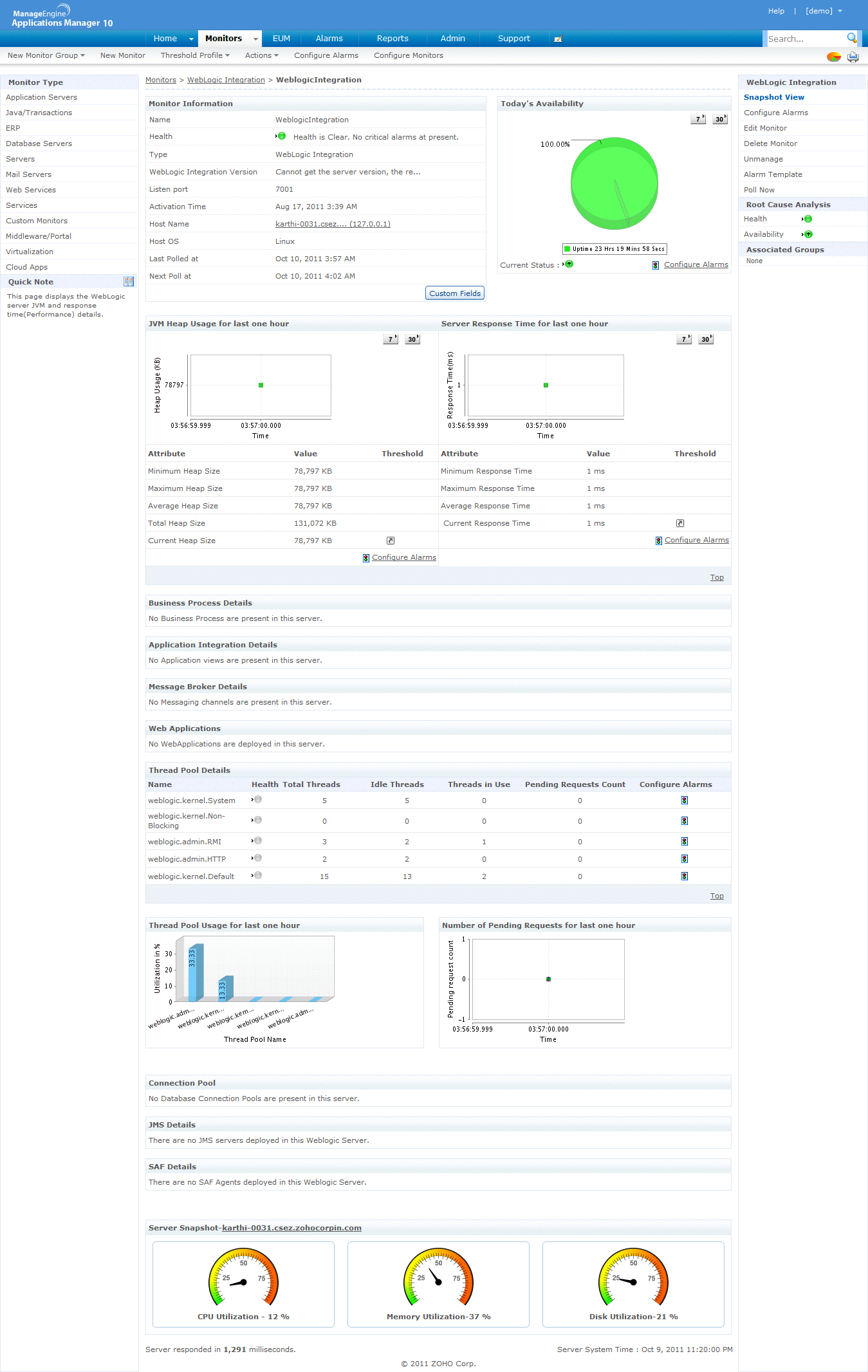 Applications Manager可監(jiān)控BEA WebLogic Integration服務(wù)器的性能和可用性。