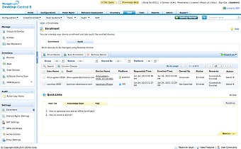 Desktop Central mobile device management enables administrators to manage iOS based devices such as iphone, ipad, ipod touch, etc. It supports version 4.0 and above. System administrators can manage all the iOS devices be it company owned or personal devices with out any hassle.