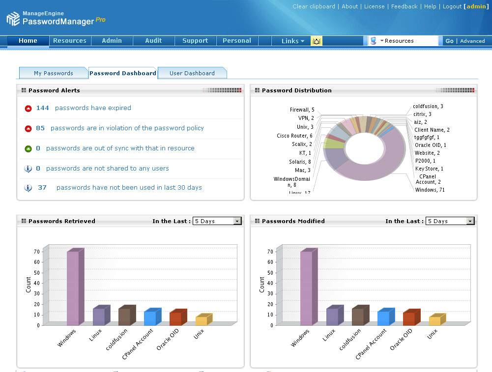 PasswordManager Pro (PMP) precisely provides all the above. The user names and passwords of your enterprise resources are encrypted using the Advanced Encryption Standard (AES) algorithm and are securely stored in the database of PMP, which serves as the central repository. Just enter the username and passwords for various enterprise resources once, and you can retrieve them anytime later from the web-interface.
