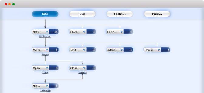 基于請(qǐng)求的屬性,包括SLA、技術(shù)員、優(yōu)先級(jí)、類別、站點(diǎn)、級(jí)別、緊急度、影響度、狀態(tài)等分析IT幫助臺(tái)的運(yùn)行情況。