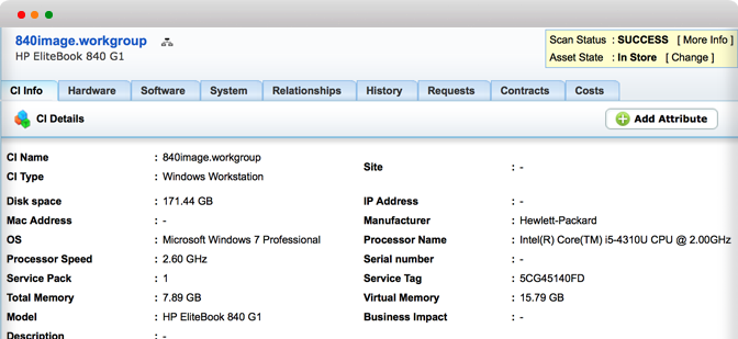 了解每個(gè)資產(chǎn)的詳細(xì)信息,包括所有人、使用者、安裝的軟件、與其它配置項(xiàng)的關(guān)系以及掃描歷史等。