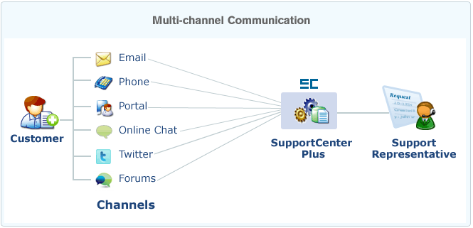 One of the primary goals of SupportCenter Plus is to enable organizations effectively manage customer communications and interactions from multiple sources - Email, Phone, Portal, Forums, Online Chat, Social Media etc and provide a unified view to the technician who handles them.